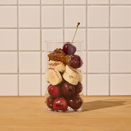 A smooth, indulgent blend of creamy banana, tart cherries, and almond butter, with a hint of cacao for a subtle chocolatey kick. Packed with all the good stuff, this smoothie is a playful, energising treat that’s sure to put a smile on everyone’s face. A deliciously fun way to fuel your day, whether it's breakfast or an afternoon pick-me-up!