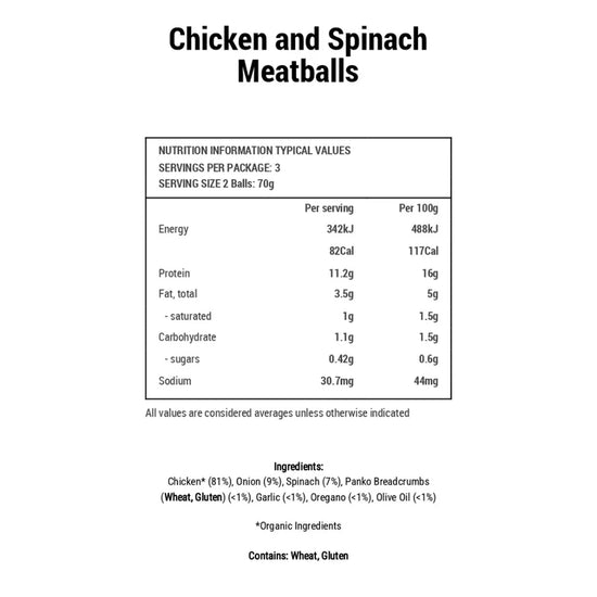 Prune, Pear & Buckwheat: Pears (60%), Buckwheat (30%), Prunes (5%), Chia Seeds (4%), Ground Nutmeg (1%) Lamb, Zucchini & Sweet Potato: Sweet Potatoes (50%), Zucchini (20%), Carrots (18%), Lamb* (11%), Mixed Spices (1%) PB & J Puree: Banana (50%), Coconut Milk (25%), Peanuts (15%), Raspberries (6%), Chia Seeds (4%) Zucchini, Pear & Peas: Zucchini (40%), Pears (35%), Peas (24%), Mint (0.5%), Avocado Oil (0.5%) Banana, Dragon Fruit: Banana (60%), Dragonfruit (30%), Chia seeds (5%), Coconut Cream (4%), Hemp Seeds* (1%) Organic Beef and Liver Meatballs (6 Pack): Beef* (66%), Capsicum (12%), Onion (12%), Tomato (4%), Chicken Liver* (1%), Garlic (1%), Salt (1%), Olive Oil (<1%), Oregano (<1%), Flaxseeds* (<1%) Sweet Potato Rostis: Sweet Potato* (33%), Chickpeas*, Potatoes*, Pumpkin*, Carrots*, Capsicum*, Onion*, Rice Flour*, Canola Oil*, Salt*, Pepper* Spirulina Pancakes: Banana (39%), Egg* (24%), Oats (Gluten) (23%), Oat Milk (Gluten) (4%), Baking Powder (2%), Spirulina (2%), Vanilla Bean (1%), Flaxseeds* (1%), Cinnamon (<1%), Olive Oil (<1%), Baking Soda (<1%), Salt (<1%)